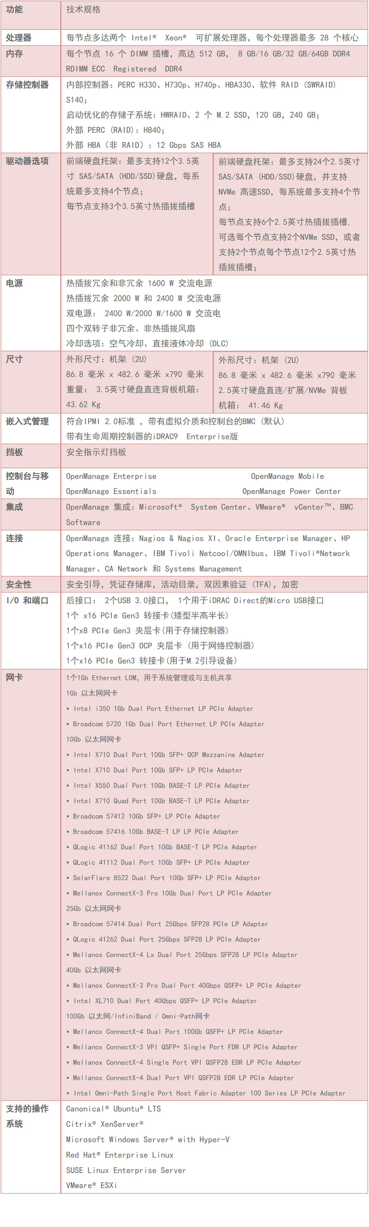 此外,还可以利用集成的采用生命周期控制器的iWeb和 Redfish API,给予高级管理和脚本编制支持。